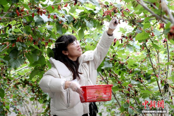 图为任务职员正在显现鲜嫩采戴的桑葚。卓芊余 摄 据耕耘户周耀礼引见,那片桑葚园已栽培78年。受益至今年和气的气象条款,桑葚上市时光年夜幅提早,展望采戴期可不断至清朗节先后。每一年皆有洪量市平易近旅客前去采戴,出格是正在节沐日时代,采戴园人气呼呼旺。